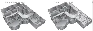 Zone 2: areas primarily used during the day (living room, kitchen)