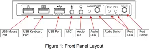 - Switch between devices via front push button or hotkey