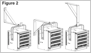 The heater is to be installed in a fixed location. The discharge air should wipe the walls without blowing directly on them. (FIGURE 1)