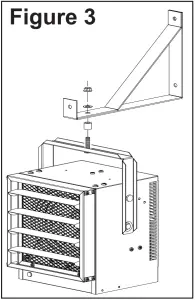 - Locate a stud or other suitable support and install hanger bracket on wall or ceiling. Select location so control knob on back of heater can be reached easily.*