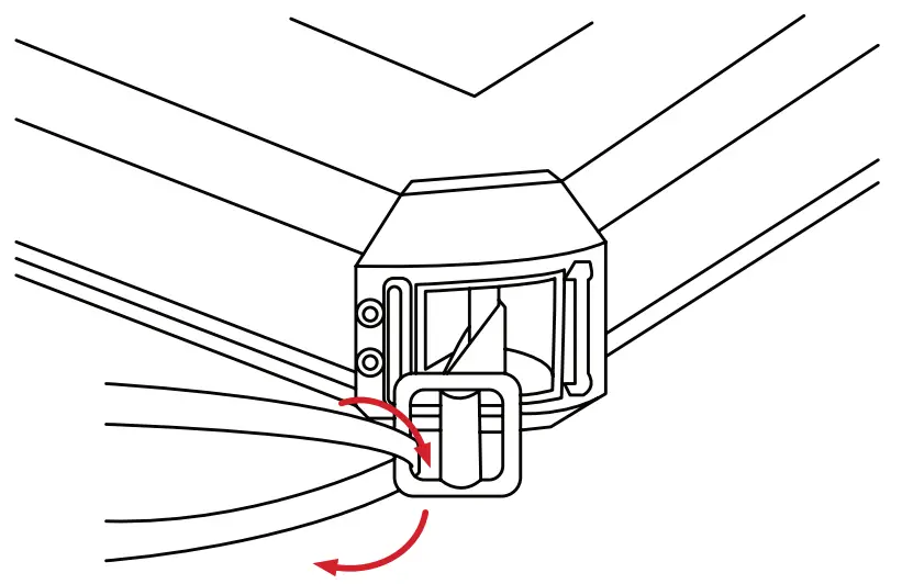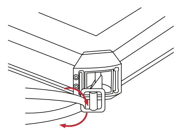 - Feed the other end of the strap from the outside-in and through the plastic fastener.