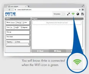 You will know Artie is connected when the WiFi icon is green.