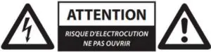 - Risk of electric shock. Do not open