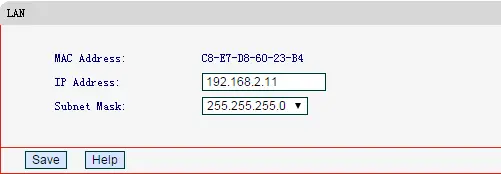 Example: If your DHCP is 192.168.2.100 – 192.168.2.199 then you can set the IP to 192.168.2.11