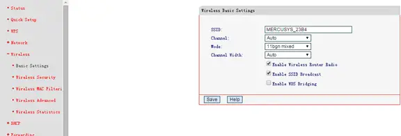 Go to Wireless>Basic Settings and configure the SSID (Network name). Select Save.