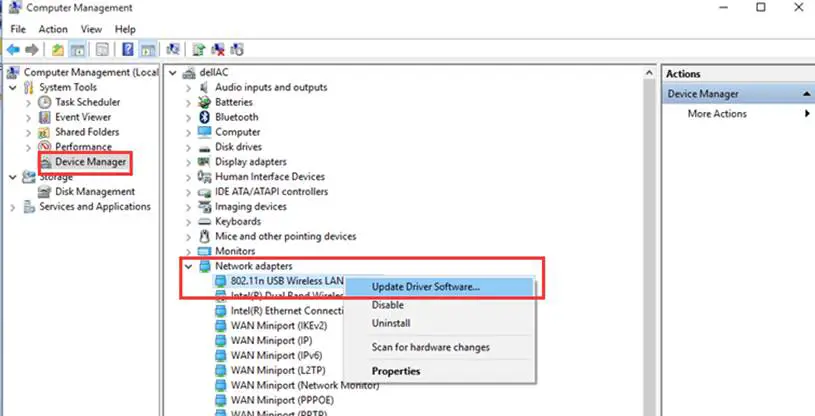 4. Open Device Manager. Right click the adapter and then click Update Driver Software….