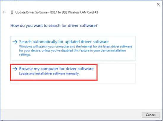 5. Click Browse my computer for driver software.
