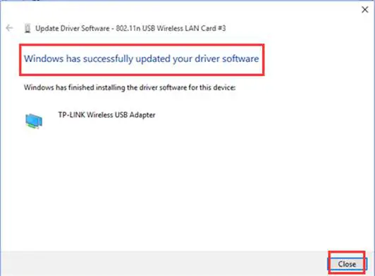 10. Then the adapter will be installed successfully and click on Close.