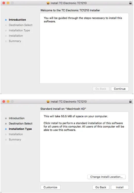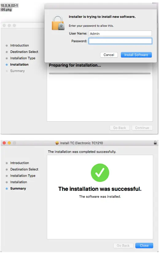 A default location will be selected for installation, or you can select another folder manually. If you have administrator authorization in place, you will need to enter your password before beginning installation.