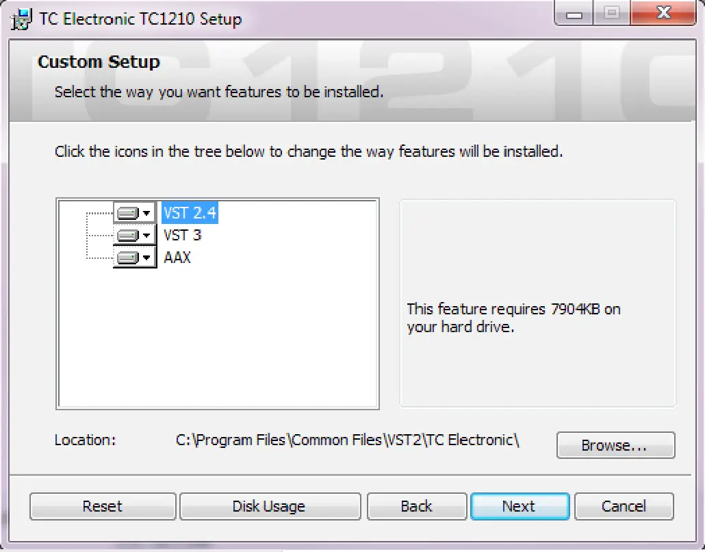 Select which VST and/or AAX components you want to install. Pro Tools uses AAX and most other DAW programs use VST. The installer will offer a default location to save the file, but you can choose another location by clicking the ‘Browse’ button.