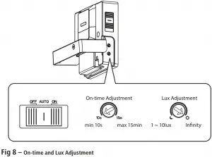 - Time ON Adjustment: 10 seconds (Min) to 15 minutes (Max)
