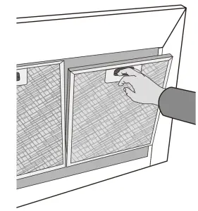 NOTE: The metal grease filters must be removed and washed, either by hand or in the dishwasher, every four weeks.