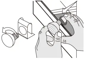 - Remove the protective plastic film from the hood body and hang hood on the mounting screws then secure at the anti-tilt locations as indicated in Fig. 6 & 7.
