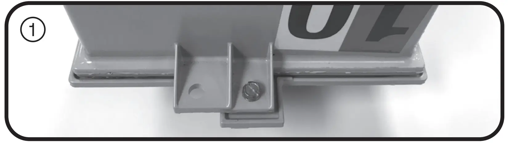 - Place the ballast housing hinge pin over the cover hinge. Close and secure the ballast housing and cover by tightening the screw.