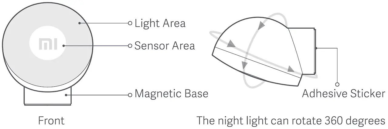 - Make sure the Mi logo is upright at all times when installing and using the night light.