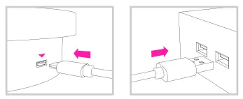 One end of the device is plugged into the navigation plug, and the other side is plugged into the power cord and computer USB 2.0 or above port respectively.