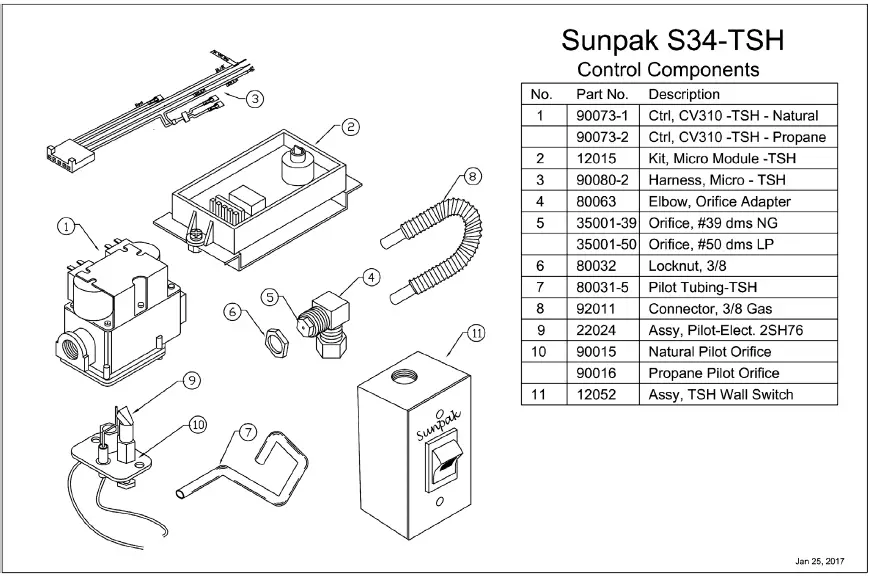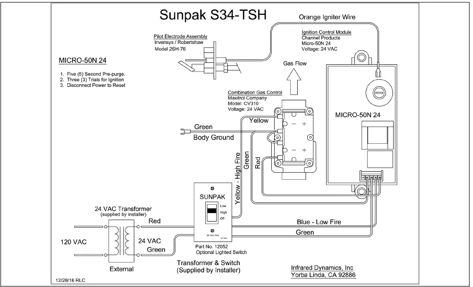 - Sunpak S34-TSH Heaters need 24 VAC to operate. A special lighted switch is provided which also requires 24 VAC. In sizing your step down