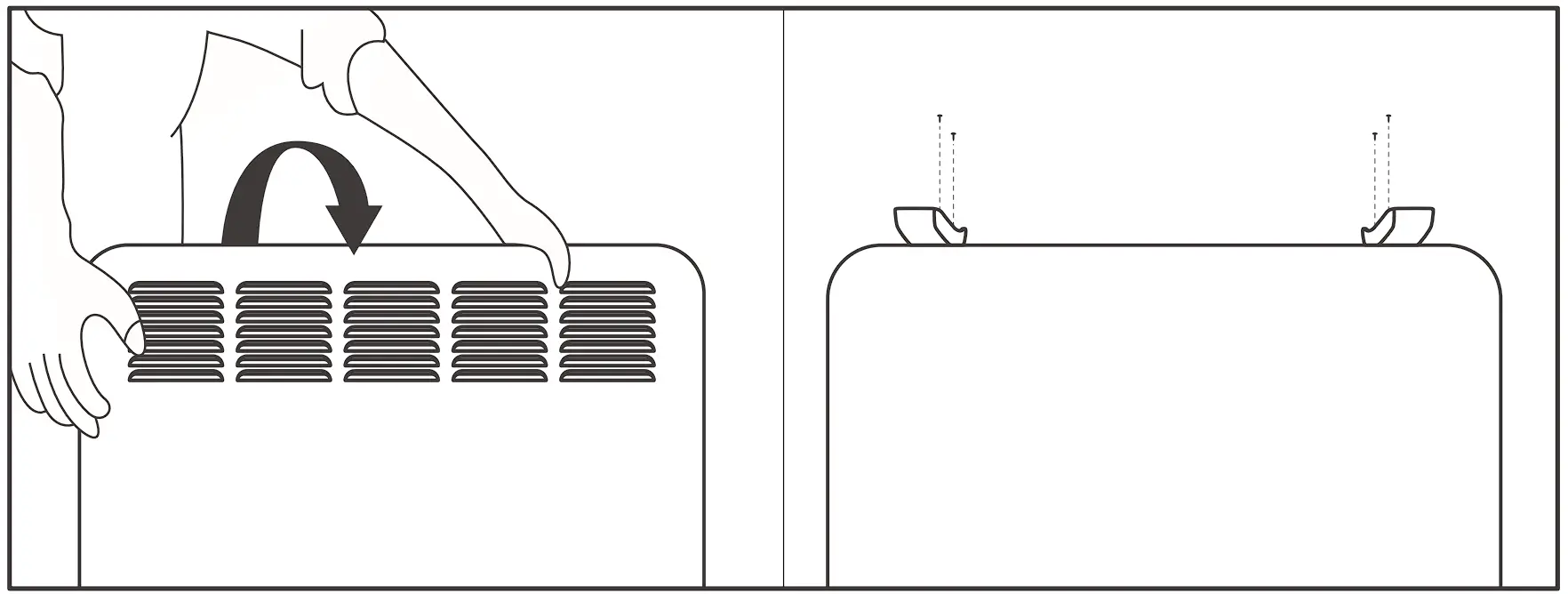 - Gently insert the bottom of the heater to the hanging bracket first and then push the top of the heater body onto the hanging bracket. It is good practice to try attaching the hanging bracket to the heater and taking off, so you are familiar with how it at-taches and detaches.