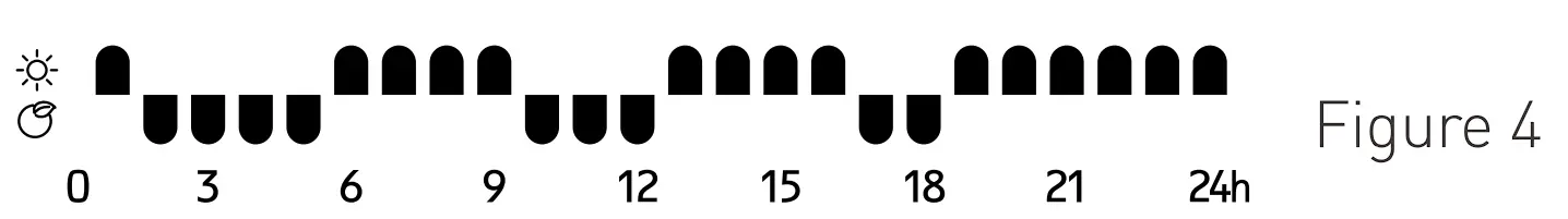 ECO mode or show no lights for the unit to operate in anti-frost mode in this hour, repeat this process up to hour 23, after setting hour 23, press