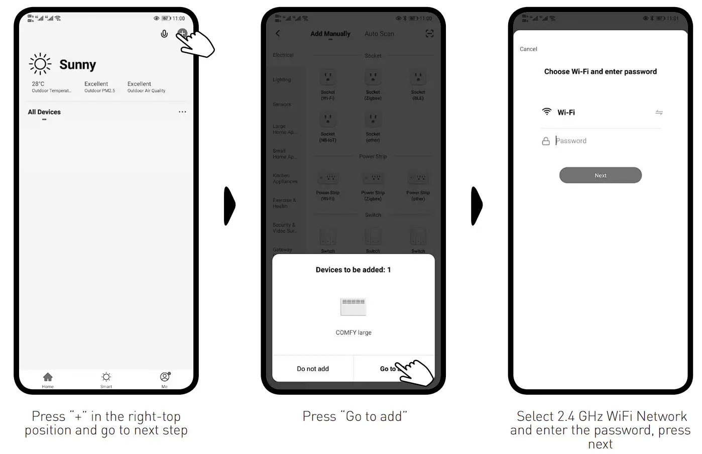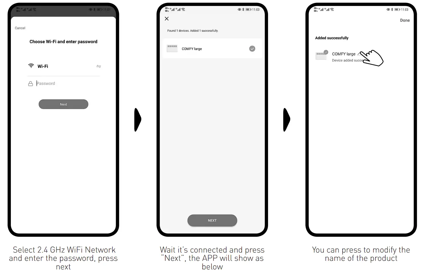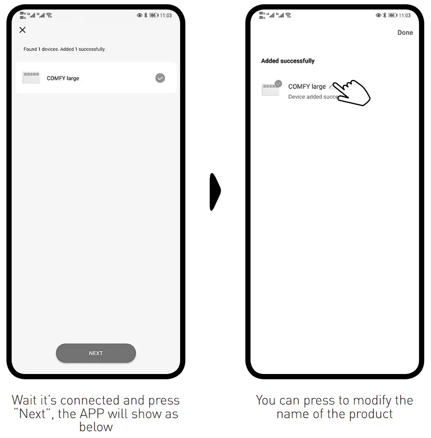 for 3 secs, the item will “beep”, the WiFi indicator light will flash rapidly , you can now connect within the APP.