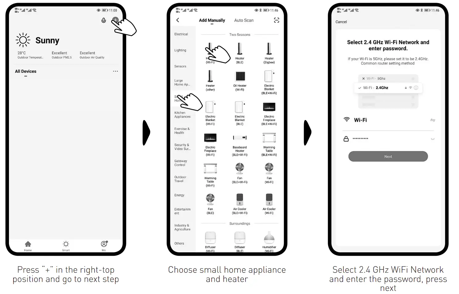 When the first using to turn on the heater, the WiFi indicator light will flash, connect it in the APP.