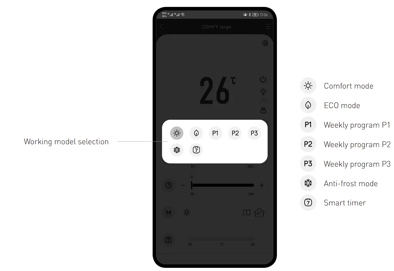 Please note when choosing P1/P2/P3 in the APP, the unit will operate to the settings shown in the manual. If you set P3 manually on the unit and you choose P3 in the APP the unit will operate to the settings you have set. You can also choose to set to your own requirements by selecting the Smart Timer