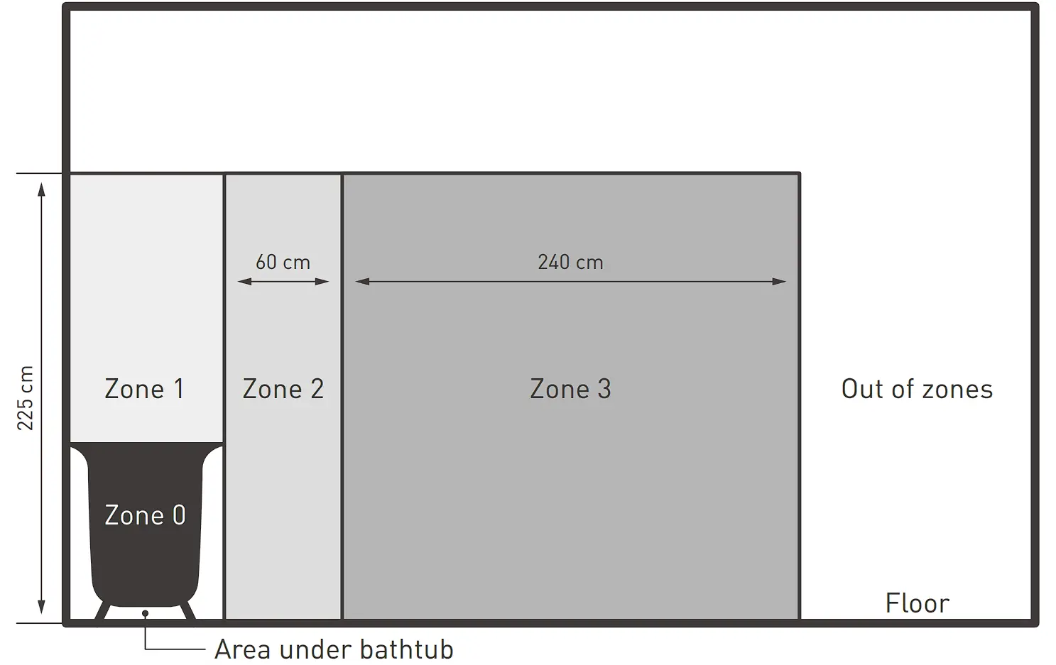 Note: The drawing below is for reference only. If this unit is fitted in a bathroom then it should be fitted by a qualified electrician. In the case as of buildings room, a room receiving a bath or a shower and socket-outlets lower or equal to 32 A the circuit corresponding must be protected by a device with differential residual current (RCD) lower or equal to 30 mA.