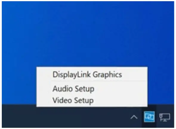 Click the DisplayLink “Icon” at the lower right corner to set up audio and video, click “Audio setup”