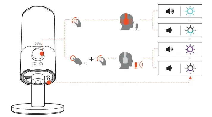 The polar pattern defines a microphone’s sound pickup sensitivity related to its angle and directions. Select an appropriate polar pattern according to your recording needs.Hold the volume knob for 2 seconds to switch between cardioid (default) and omnidirectional.