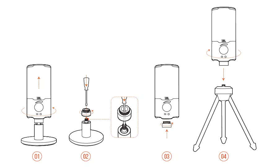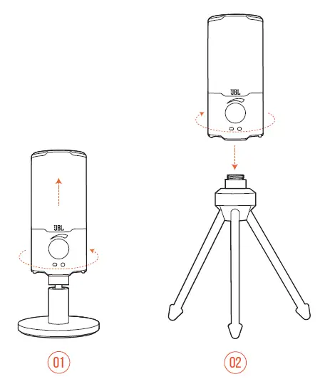 - Rotate counterclockwise to screw out the microphone from the stand.