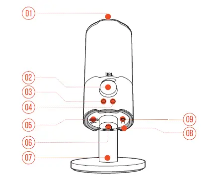 - Ring LED (RGB lighting + mute/unmute indicator) 09 3.5 mm headphone port