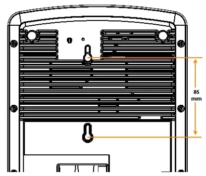 - Use the Mounting Template on the last page of this Quick Setup Guide to mark the locations for two drill holes on the mounting surface.