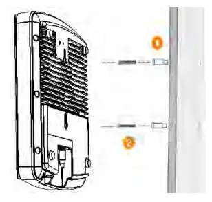 - Insert the factory-supplied anchors (1 in Figure 5) and mounting screws (2 in Figure 5) into the mounting surface, leaving approximately 6 mm (1/4 inch) of the screw heads protruding for the AP enclosure.