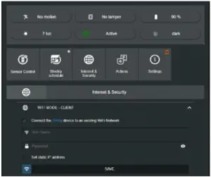 Shelly motion can be added to your home WIFI network without using the Shelly Cloud APP. To do this, search on your PC or phone for a Wi-Fi network named shellymotion-xxxxxxxx. Connect to it and open http://192.168.33.1 with the browser on your phone or computer. Choose Internet and Security menu, enable WIFI mode– CLIENT and enter your WIFI network credentials.