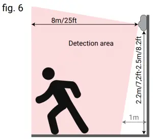 Shelly Motion has range of 8m or 25ft. Optimal height for mount- ing is between 2,2m/7,2ft and 2,5m/8,2ft.