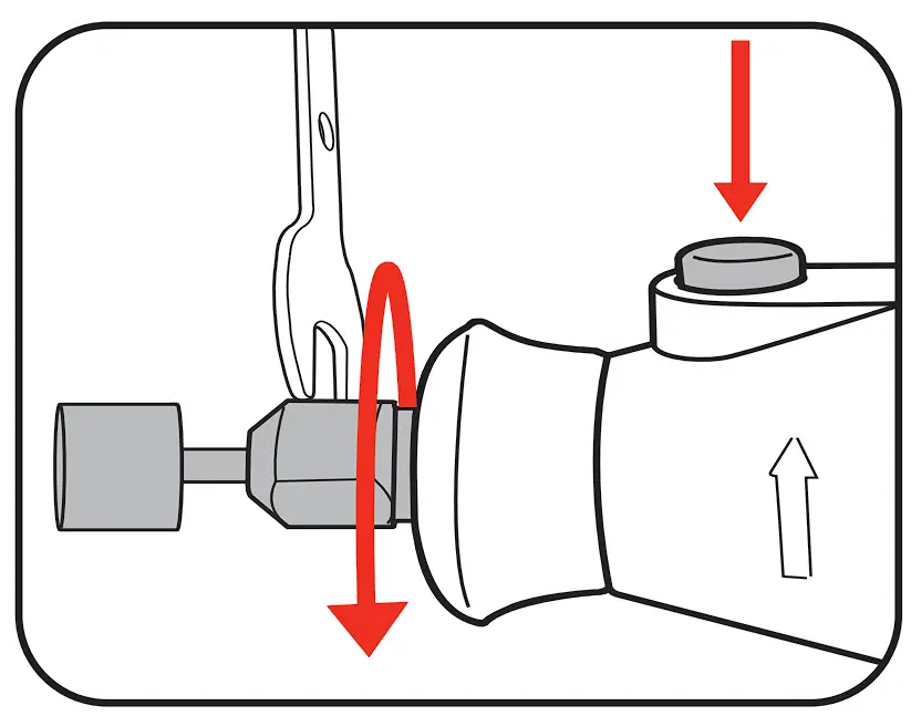 - Press and hold the spindle lock button.