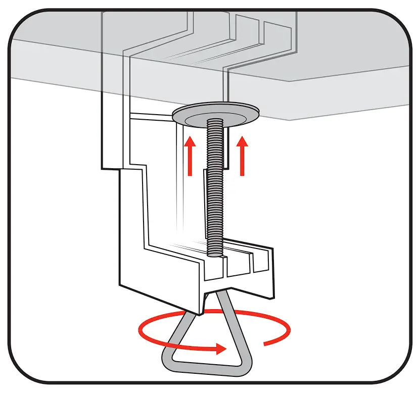 - Open the desk stand clamp by rotating the handle anticlockwise.