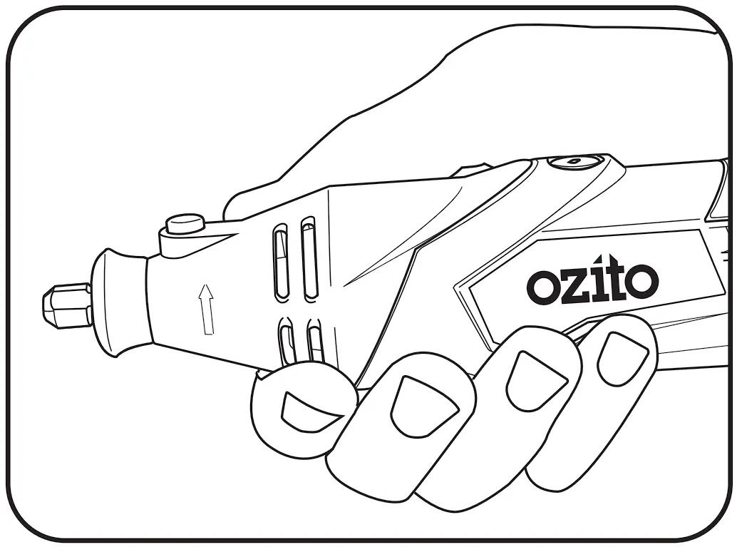 - For heavy work like cutting or grinding, hold the rotary tool in the palm of your hand.