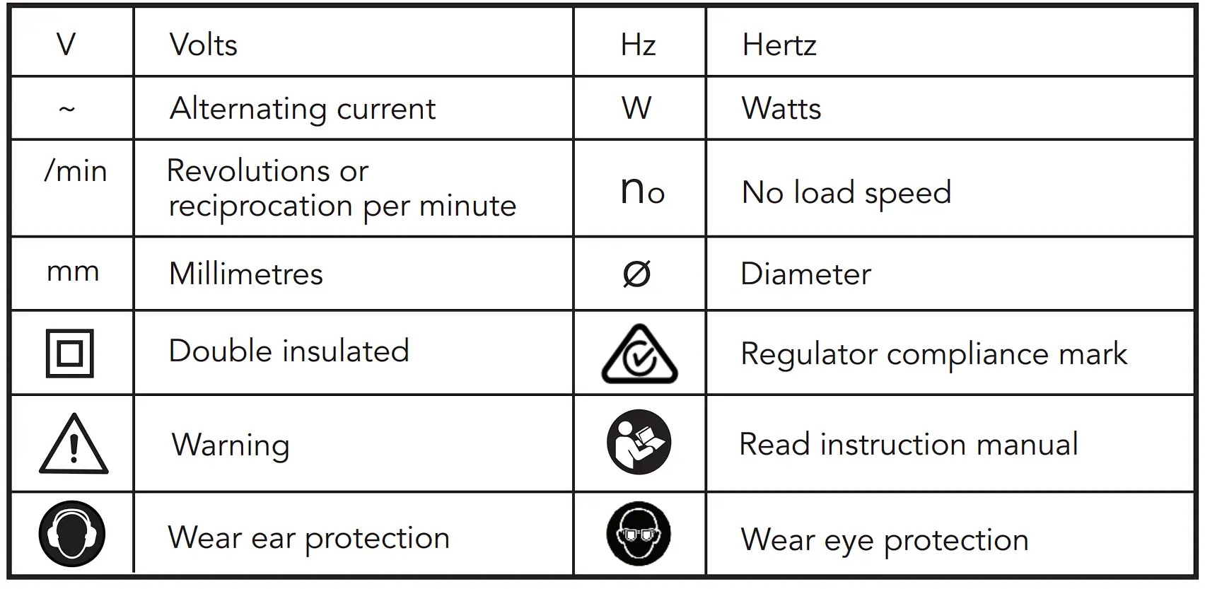 ![]() | WARNING! THE TOOL IS RECOMMENDED FOR USE WITH A RESIDUAL CURRENT DEVICE WITH A RATED RESIDUAL CURRENT OF 30MA OR LESS. |