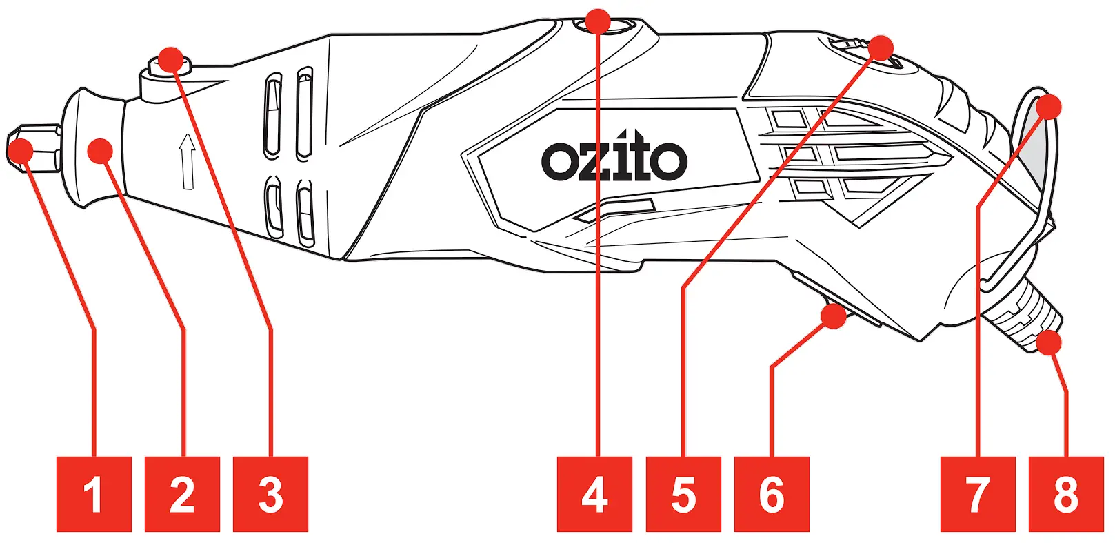Note: The higher the number on the variable speed dial, the faster the speed of the rotary tool.
