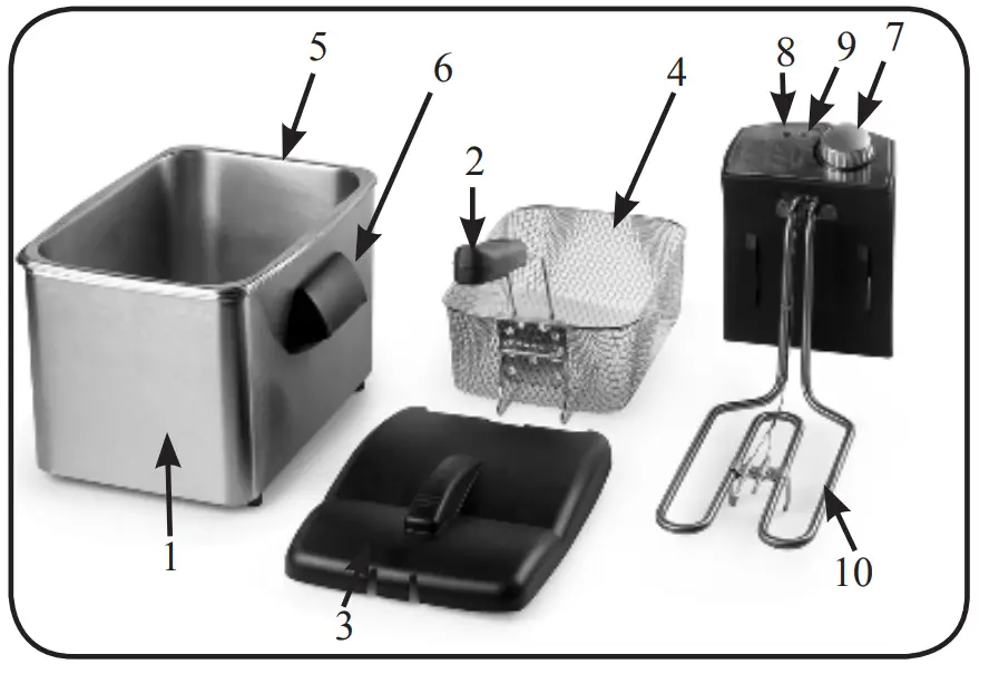 - Dry the lid, frying basket and pan thoroughy before placing them back into the deep fryer.