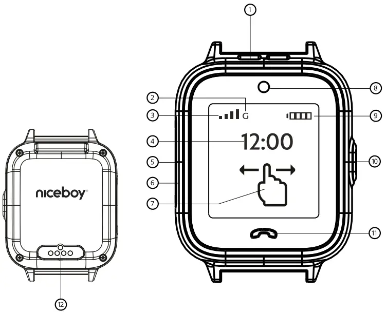 SOS function – if the child is in danger, 2 presses of the button will send an SOS signal: the watch will record 30 seconds of sound using the microphone and send the recording along with information about position to the parents‘ application.