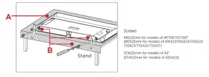 M5X25mm for models of 49”/50”/55”/65” (M5X20mm for model s of 49S423/50S423/55S423/ 75S423/75S425/75S421)