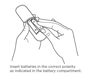 - Failure to insert batteries in the correct polarity, as indicated in the ba ttery compartment, may shorten the life of the batteries or cause batteries to leak.