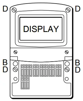 To gain access to the escutcheon remove the terminal cover by unscrewing the two ‘A’ screws which will reveal two concealed ‘D’ screws. If the instrument is fitted with an external keypad, also unscrew the two ‘C’ screws securing the keypad and un-plug the five way connector. Finally unscrew all four ‘D’ screws and carefully lift off the front of the instrument. Add the required legend to the escutcheon, or stick a new printed self-adhesive escutcheon on top of the existing escutcheon.