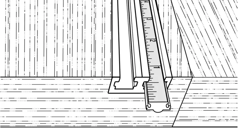 Cut a slot or dado 1-7/16″ wide by 7/16″ deep into table or work surface.