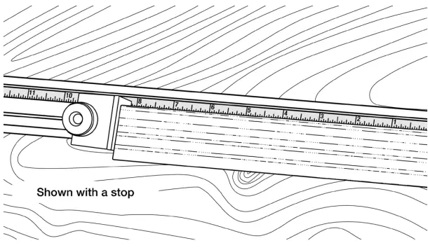 NOTE: The plastic insert is designed to slide in and out of the T-Track. To “snug” up the fit apply a piece of tape to the bottom of the insert or to the inside of the track. Includes a clear acrylic cursor (D) with adhesive backing which can be attached to stops or other T-Track accessories (sold separately).