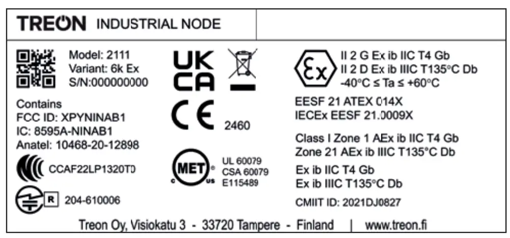 Unique Identifier: Treon Industrial Node, model 2111, variant 6k Ex
