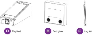 Legends Pinball comes in one box. Due to the weight of the box, it is recommended that you have another person help install the legs.