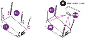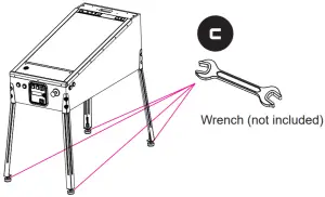 Step 2. Position the playfield upright. Use the [c] wrench to adjust the height of the playfield to your liking. Tighten the base screws when set.